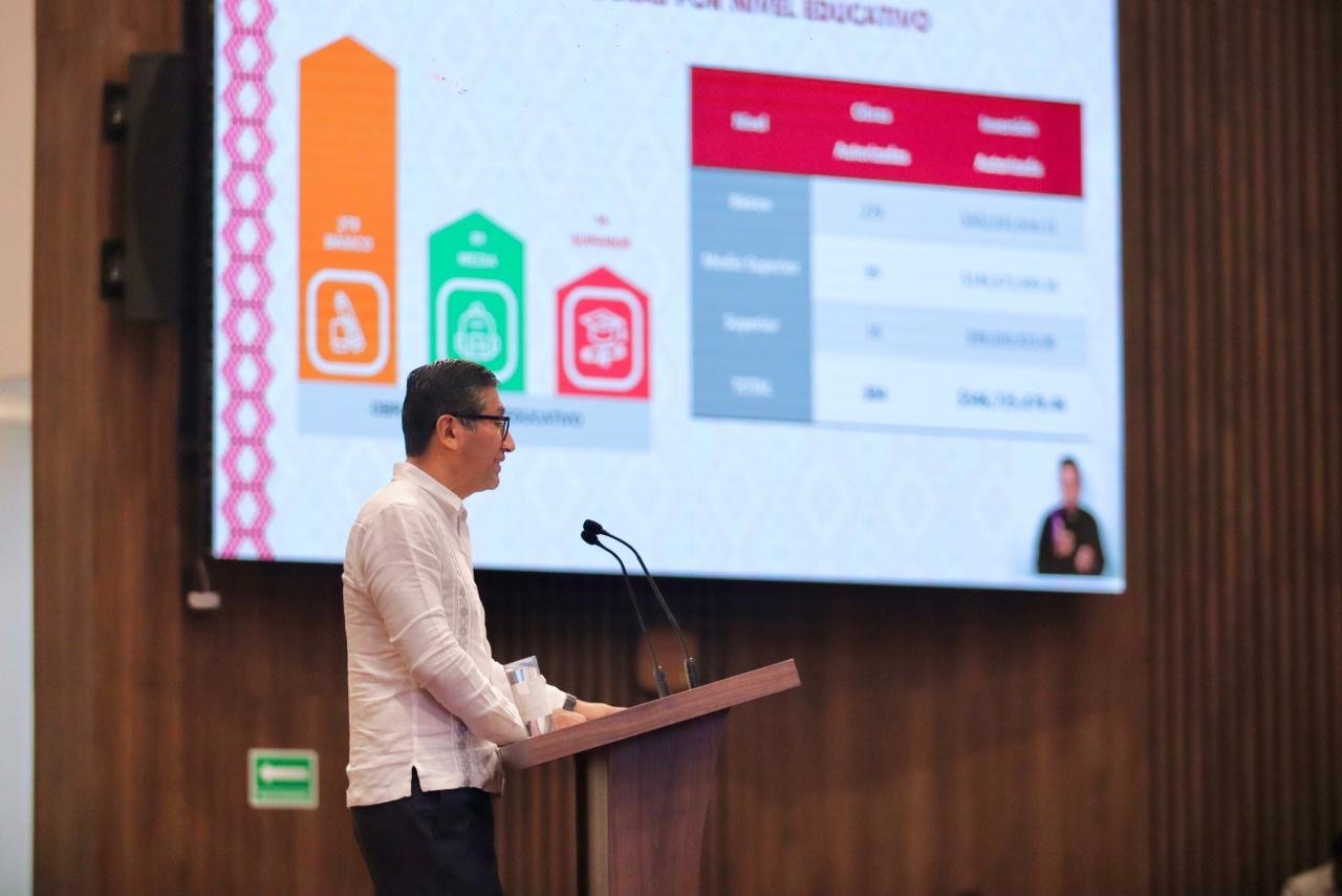 Ante integrantes de las Comisiones Permanentes Unidas de Educación, Ciencia, Tecnología e Innovación e Infraestructuras y Comunicaciones del Poder Legislativo, detalló que en 2025 se ejecutaron 384 obras civiles en los niveles básico, medio superior y superior, con una inversión de 546.7 millones de pesos; además de 321 acciones de equipamiento por 160.7 millones de pesos; en beneficio de más de 86 mil estudiantes en las ocho regiones del estado.