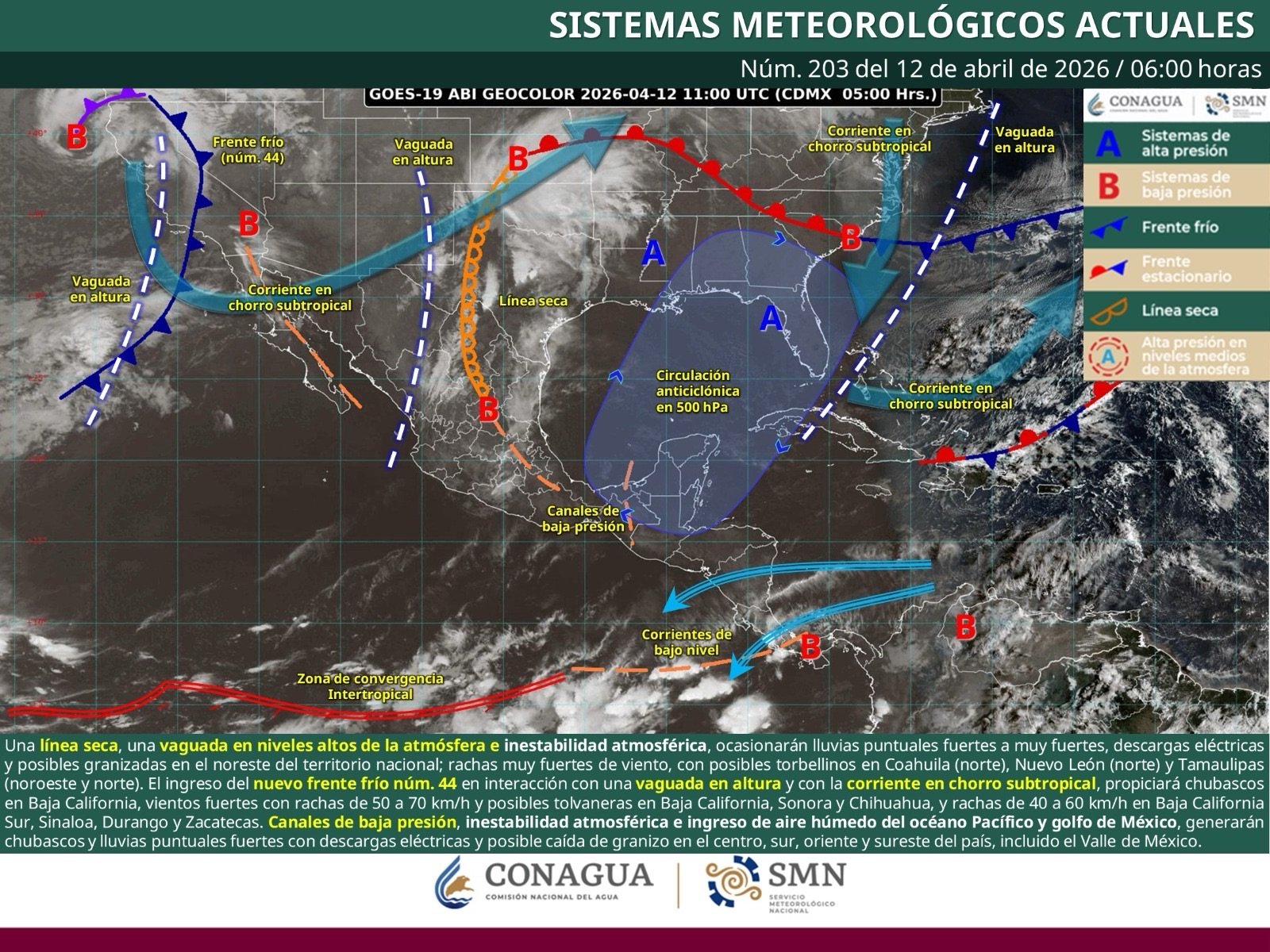 Oaxaca de Juárez, Oax. 12 de abril de 2026.- La Coordinación Estatal de Protección Civil y Gestión de Riesgos (CEPCyGR) informa que se mantendrán condiciones para lluvias con chubascos puntuales, principalmente en las regiones de la Mixteca y Sierra Sur.