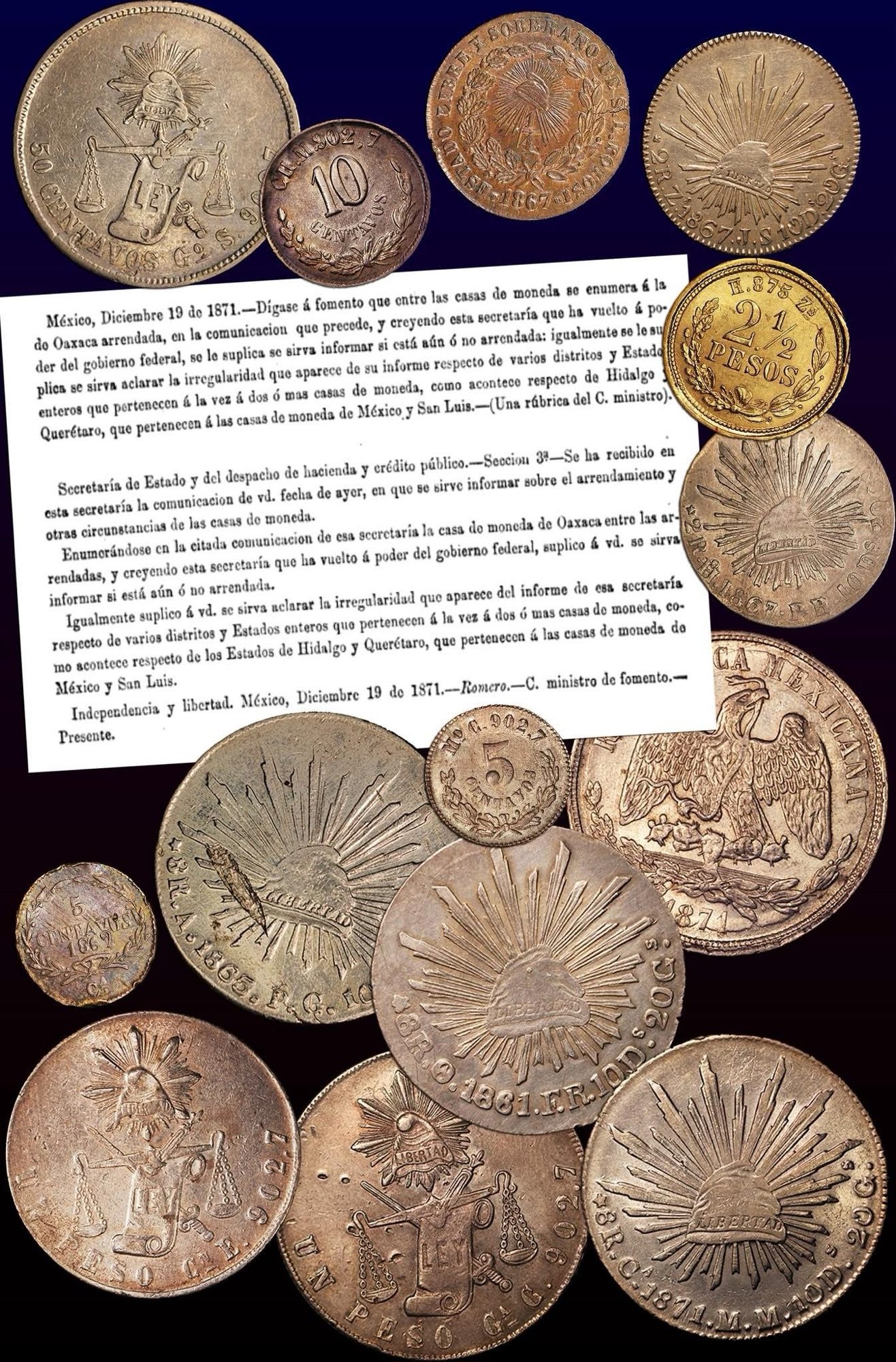 Sin embargo, casi para acabar el año de 1871 Juárez revisaba las cuentas y propietarios de las casas de moneda, las 11 que funcionaban simultáneamente entonces estaban todas sin excepción en manos extranjeras, todas; ocupándose detenidamente de la de Oaxaca por razones obvias, él mismo la había promovido en 1858 en su establecimiento a fin de promover circulante e inversión en esa región de su nacimiento.